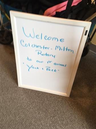 The Colchester-Milton Rotary collected backpacks for Milton Elementary School children